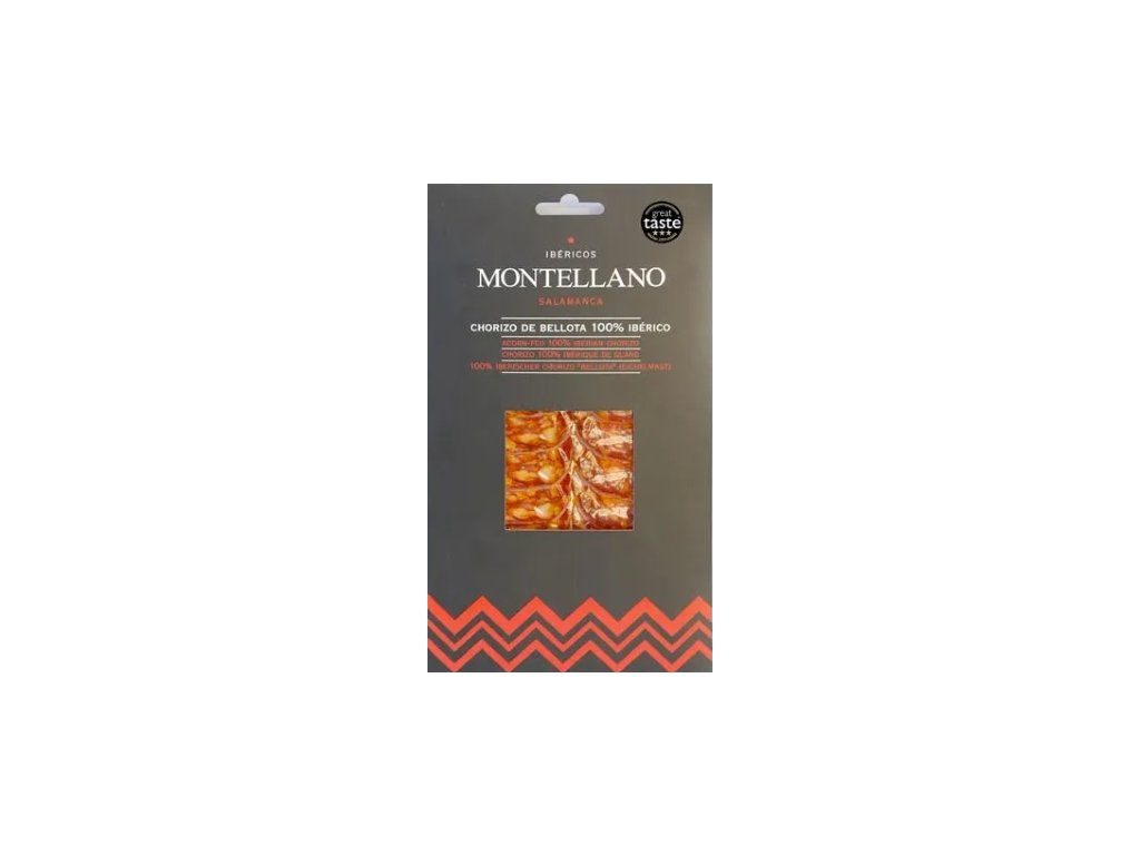 | Složení: | Vepřová maso z iberského masa krmená žaludy, sůl, paprika, česnek, oregáno, cukr, sušené mléko, dextrin, konzervant E-250, přírodní vepřové střívko |